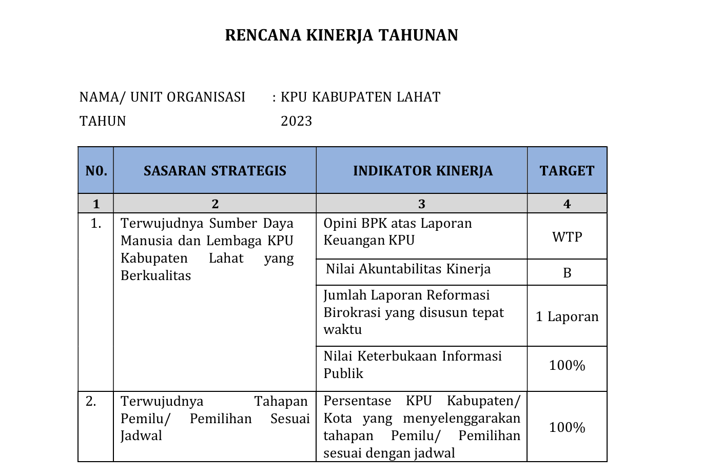 RENCANA KINERJA TAHUNAN KPU KABUPATEN LAHAT TAHUN 2023 Jumat, 12 Juli 2024 07:00 703 Pengumuman selengkapnya dapat diunduh disini Bagikan: Telah dilihat 703 kali