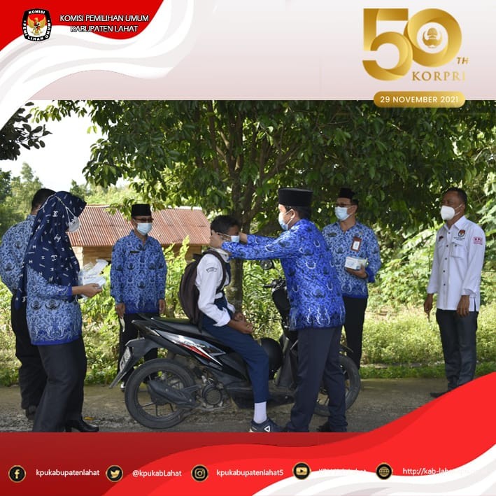 Dalam rangka memperingati HUT KORPRI yang ke 50 Tahun dengan Tema " ASN Bersatu, KORPRI Tangguh, Indonesia Tumbuh", KPU Kabupaten Lahat melaksanakan Bakti Sosial yang difokuskan dalam upaya pencegahan penyebaran Virus Covid-19 yang sampai saat ini dikejutkan dengan varian baru yaitu Omicron.
